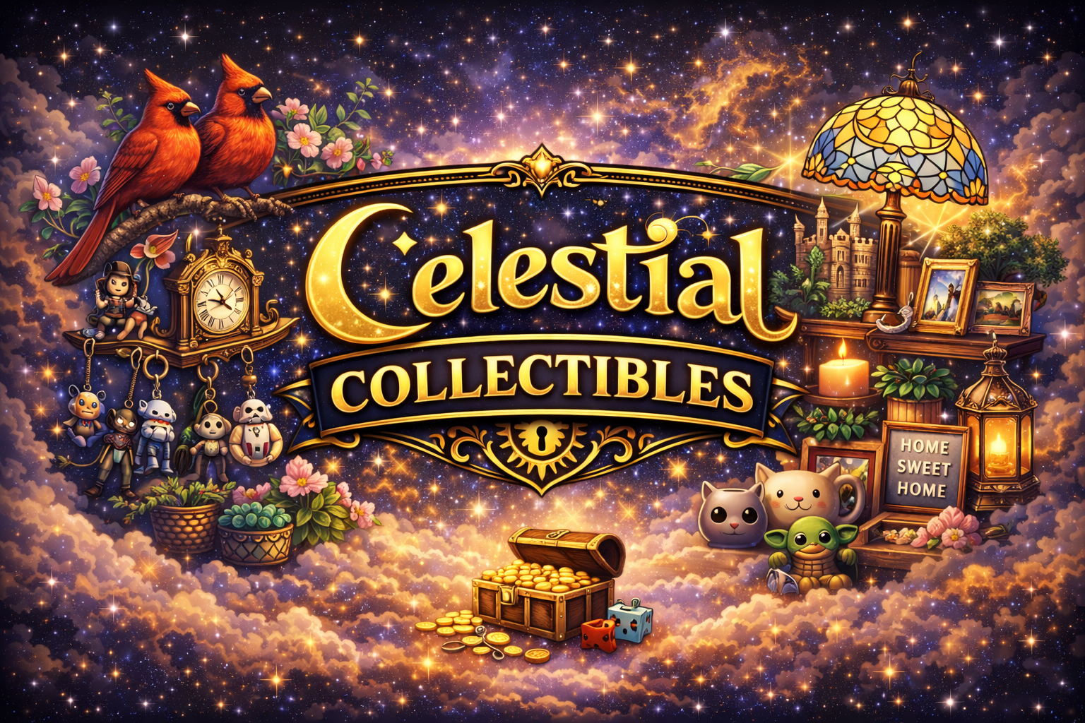 Celestial Collectibles is a curated selection of decor, kechains, seasonal accents, and everyday finds, chosen for their charm, character and gift-ready appeal.